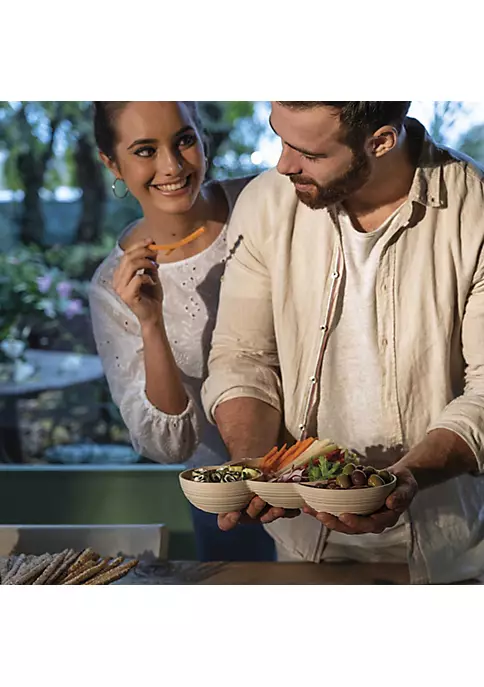 Guzzini hors d’oeuvres dish, clay. Made by recycling eight 100% disposable water bottles.