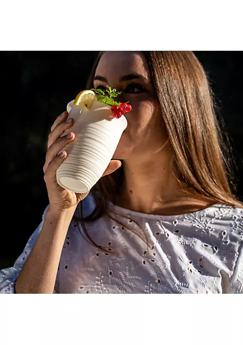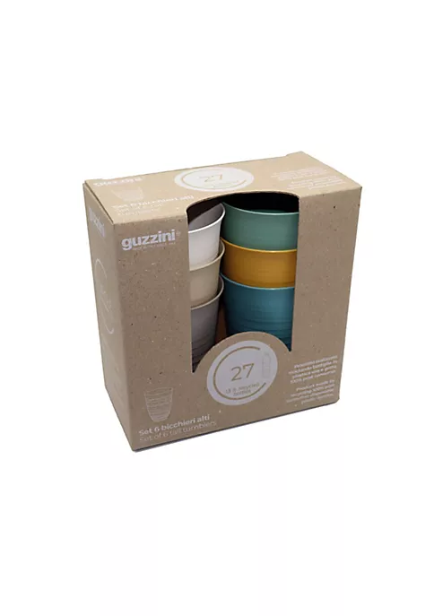 Set of 6 elegant, functional stackable tall tumblers. Made by recycling sixteen 100% post-consumer disposable water bottles. Capacity 520cc.