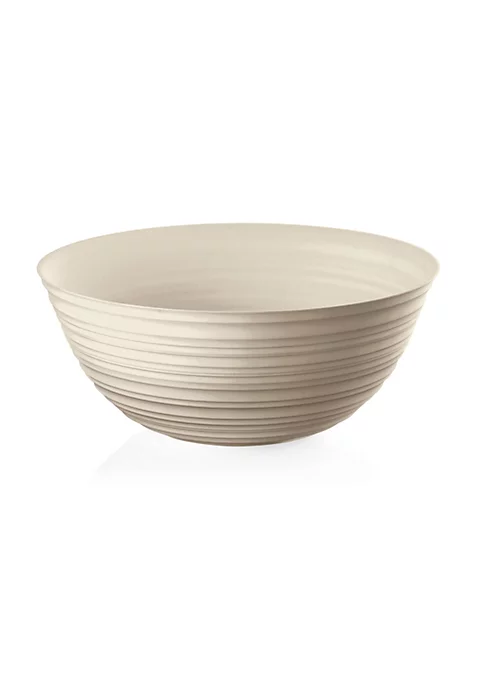 Tierra collection bowl, made entirely by recycling 14 post-consumer PET water bottles, symbolising a revolution in terms of material and style. The intentionally uneven circular decorations confer a strikingly resonant hand-made look. A careful selection of colours inspired by the shades of the earth and nature further underlines this collection’s nature-friendly overtones.