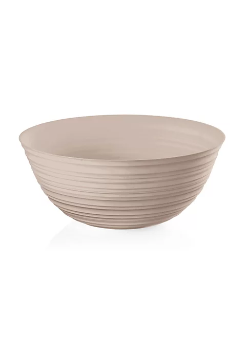 Tierra collection bowl, made entirely by recycling 14 post-consumer PET water bottles, symbolising a revolution in terms of material and style. The intentionally uneven circular decorations confer a strikingly resonant hand-made look. A careful selection of colours inspired by the shades of the earth and nature further underlines this collection’s nature-friendly overtones.