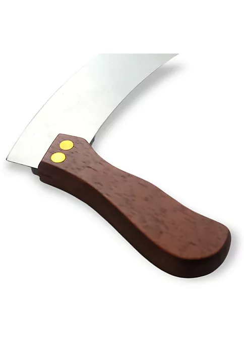 Perfect for chopping vegetables or mincing herbs, this 10″ Curved Chopping Knife features an extremely sharp curved blade and wooden handles. Dishwasher safe.