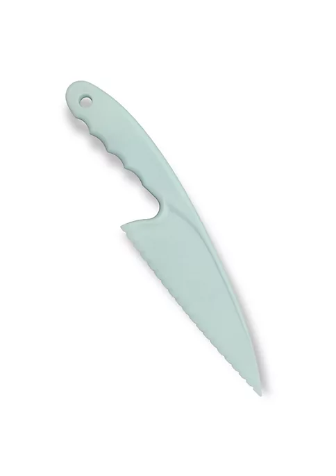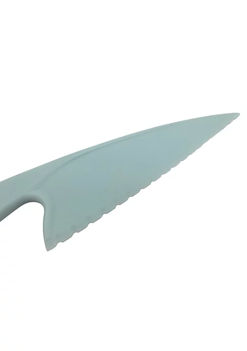 The lettuce knife measures 11.5-inches long, with the blade portion being 7-inches. The knife ships randomly as either green or blue. Made from durable nylon for long-lasting use.