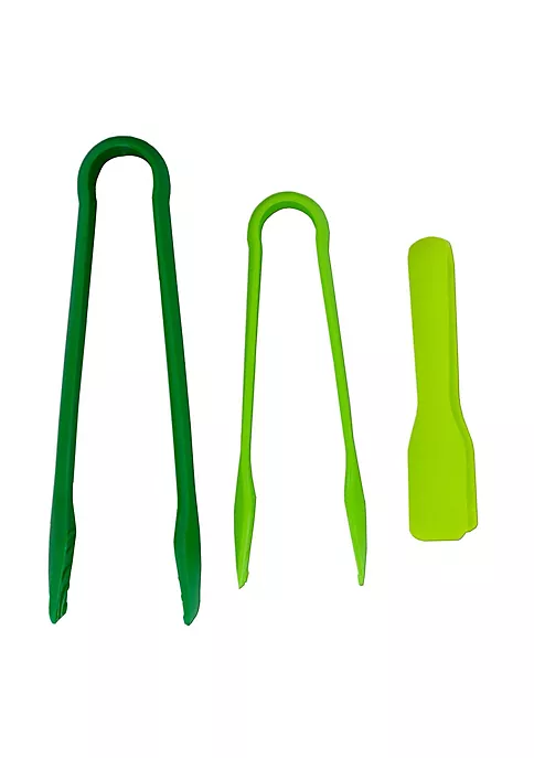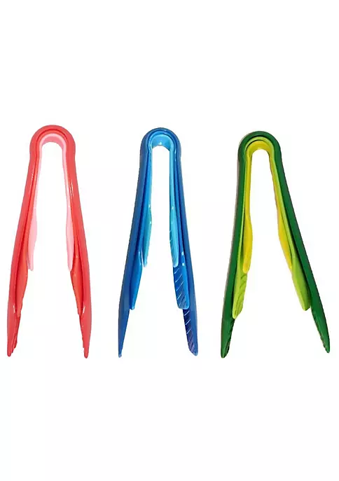 Great for ice, desserts, salads and more, this 3-piece Nesting Tongs Set features durable plastic tongs with ribbed texture for a secure grip. Tongs snap together for easy storage.