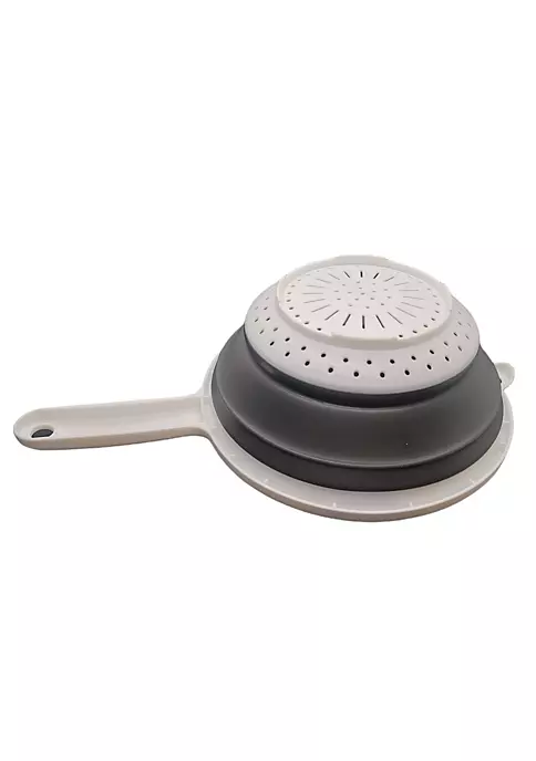 The strainer is collapsible, so it doesn’t take up room in your kitchen cupboards. The space saver collapsible colander is approximately 8″ in diameter with a 5″ handle and is 1.25″ tall in size when collapsed. Expands to 3.5″ tall when fully expanded.