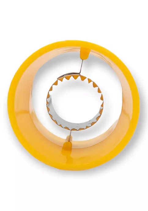 The outer protective handle is made from durable plastic and the blade is made from stainless steel. Measures 2.875-inches in diameter by 2-inches tall.