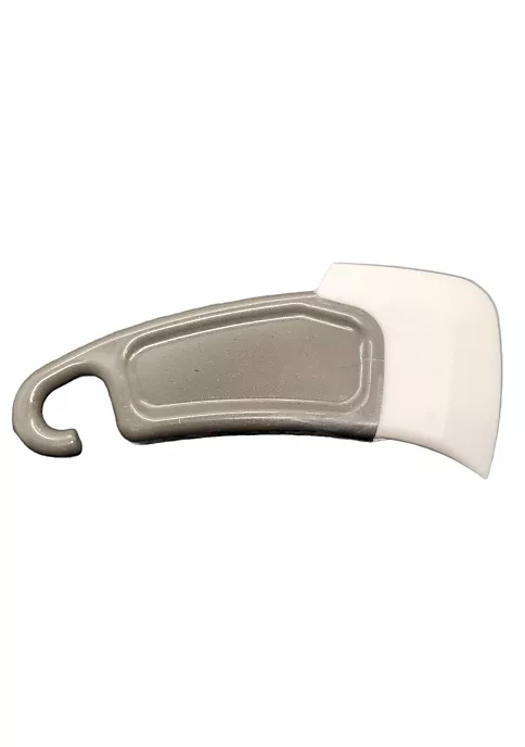 It beats a stainless steel scrubber or metal scraper as the soft silicone helps prevent scratches and damage. It features a fish-hook style hook at the top for easy storage, and the scraper portion extends up the side for easier access to clean the sides of bowls and pots.