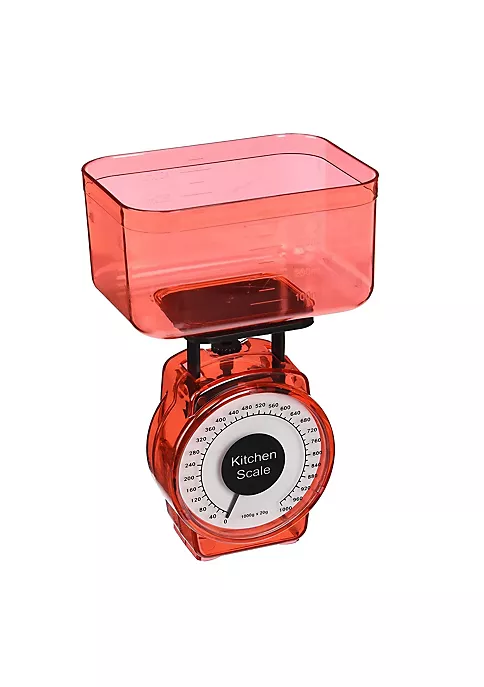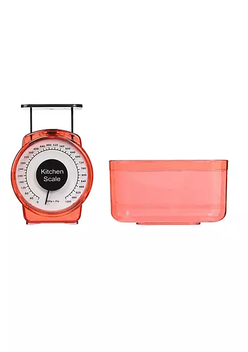 Perfect for cooks, dieters and families, this Kitchen Food Scale features a compact, spring-loaded plastic scale with a separate tray for weighing with measurement marks.
