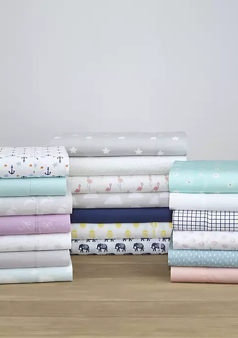Fitted Sheet: 39 in W x 75 in L (fits mattresses up to 18 in)